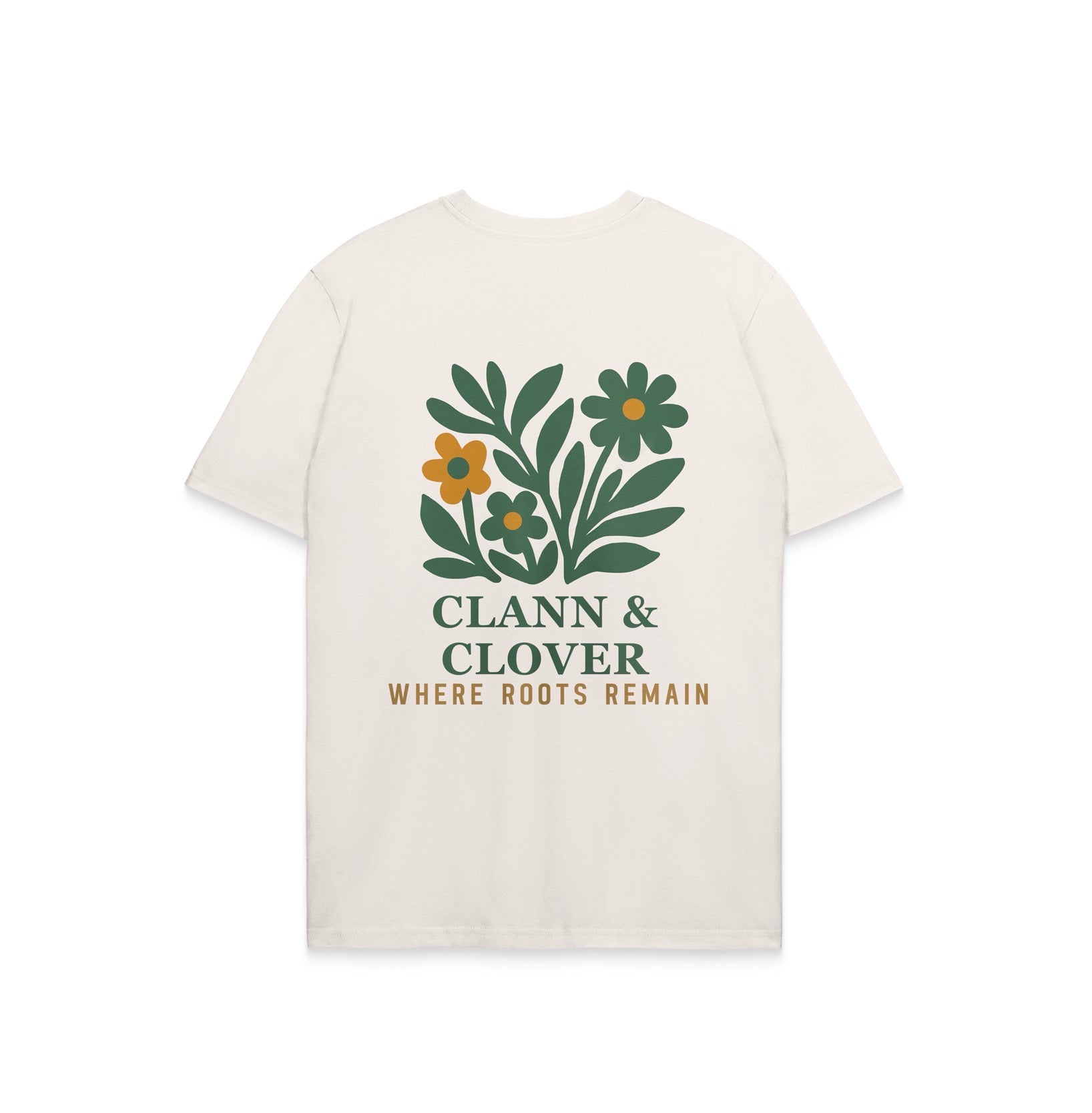 The Where Roots Remain T-shirt features a minimalist front chest logo paired with a bold, nature-inspired back print. Drawing on wild flora and grounded colour tones, this piece reflects connection — to place, people, and what lasts.